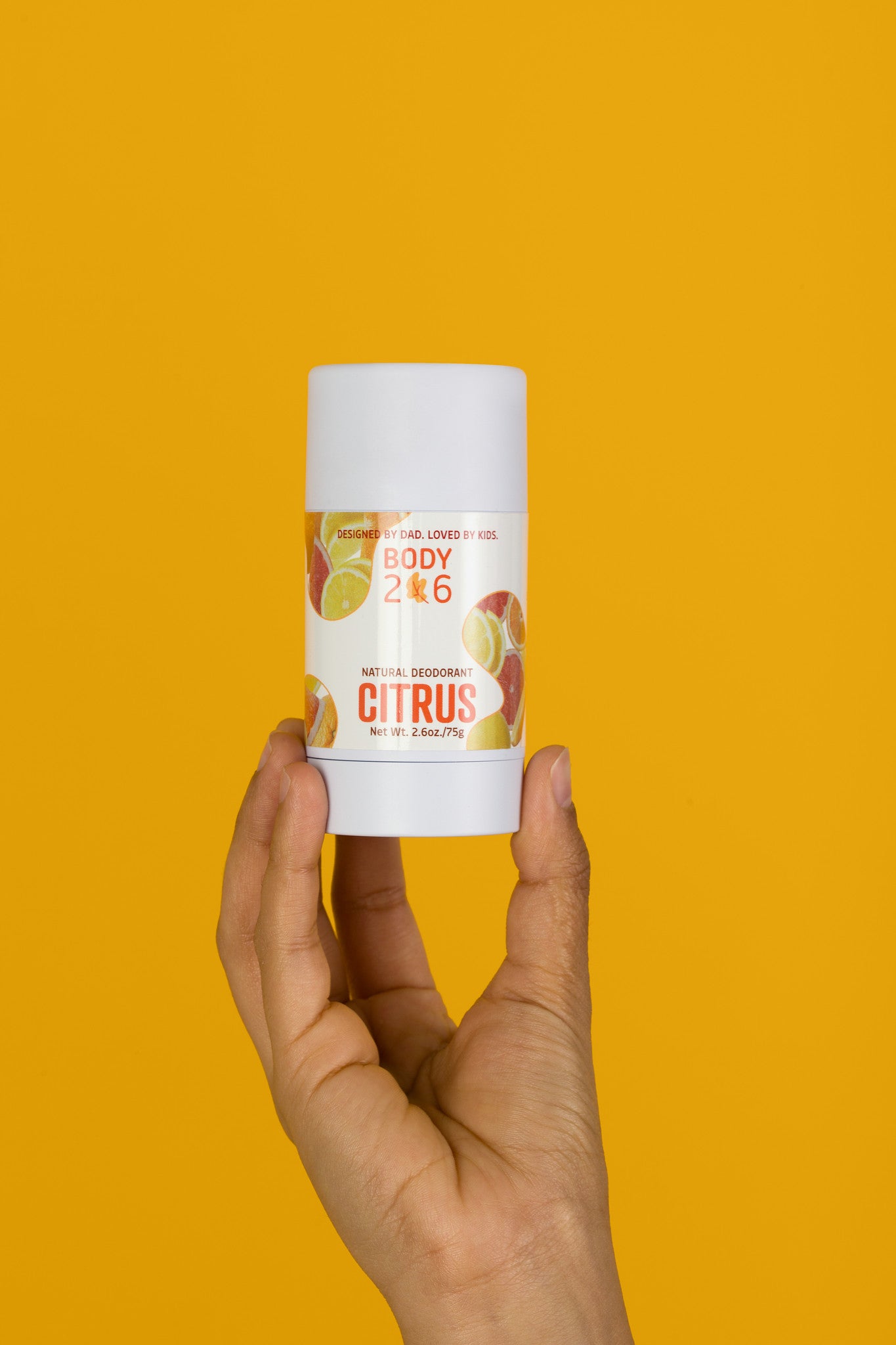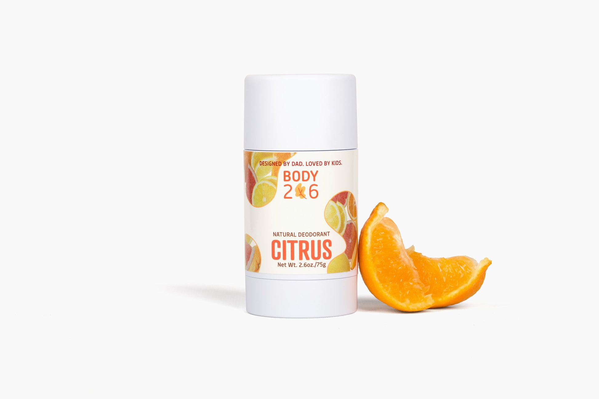 BODY206 Citrus scented kids natural deodorant helps fight odor.