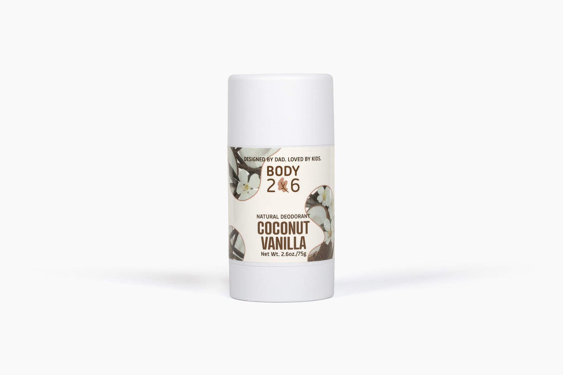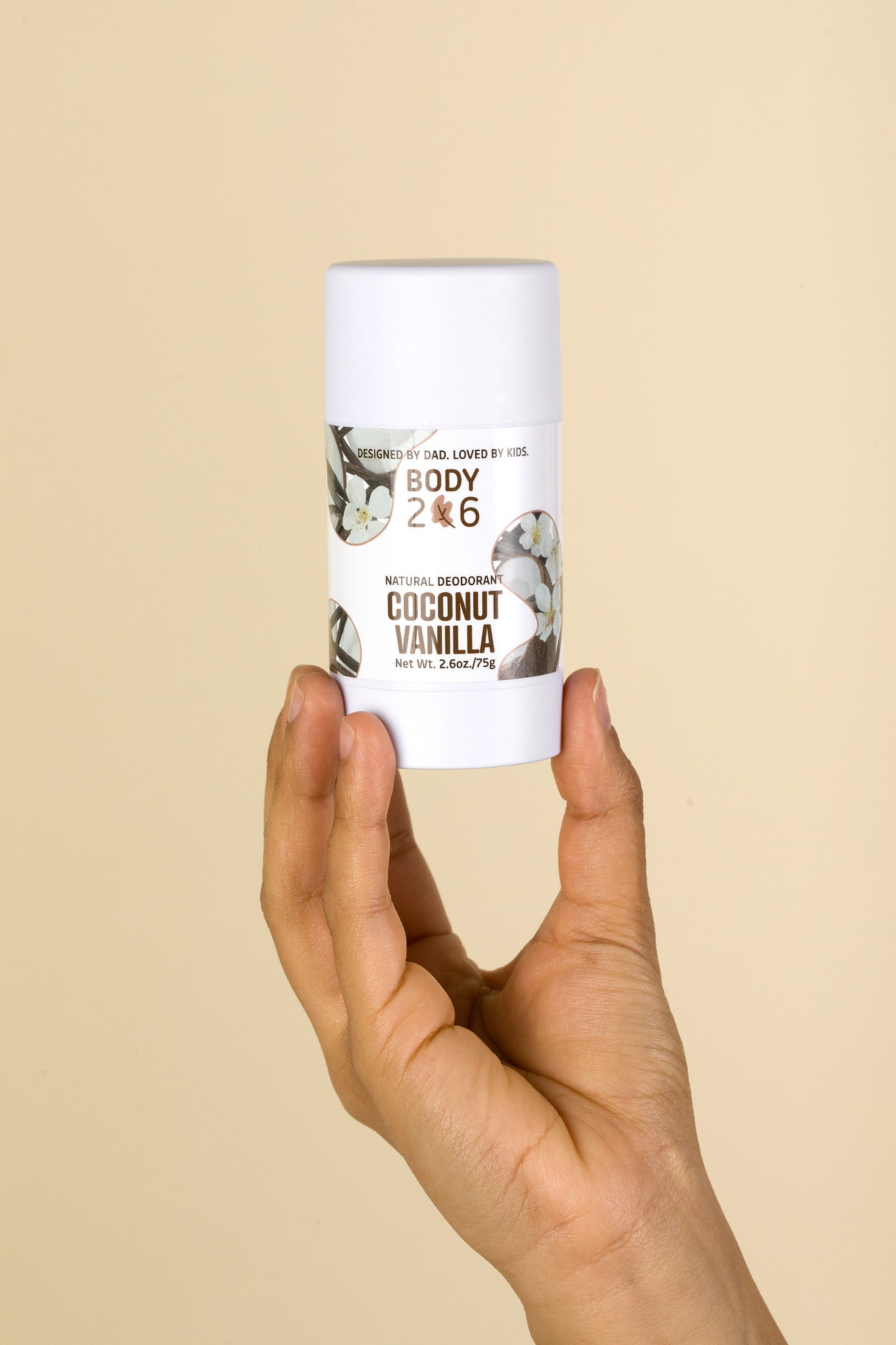 BODY206 Coconut & Vanilla scented kids natural deodorant helps fight odor.